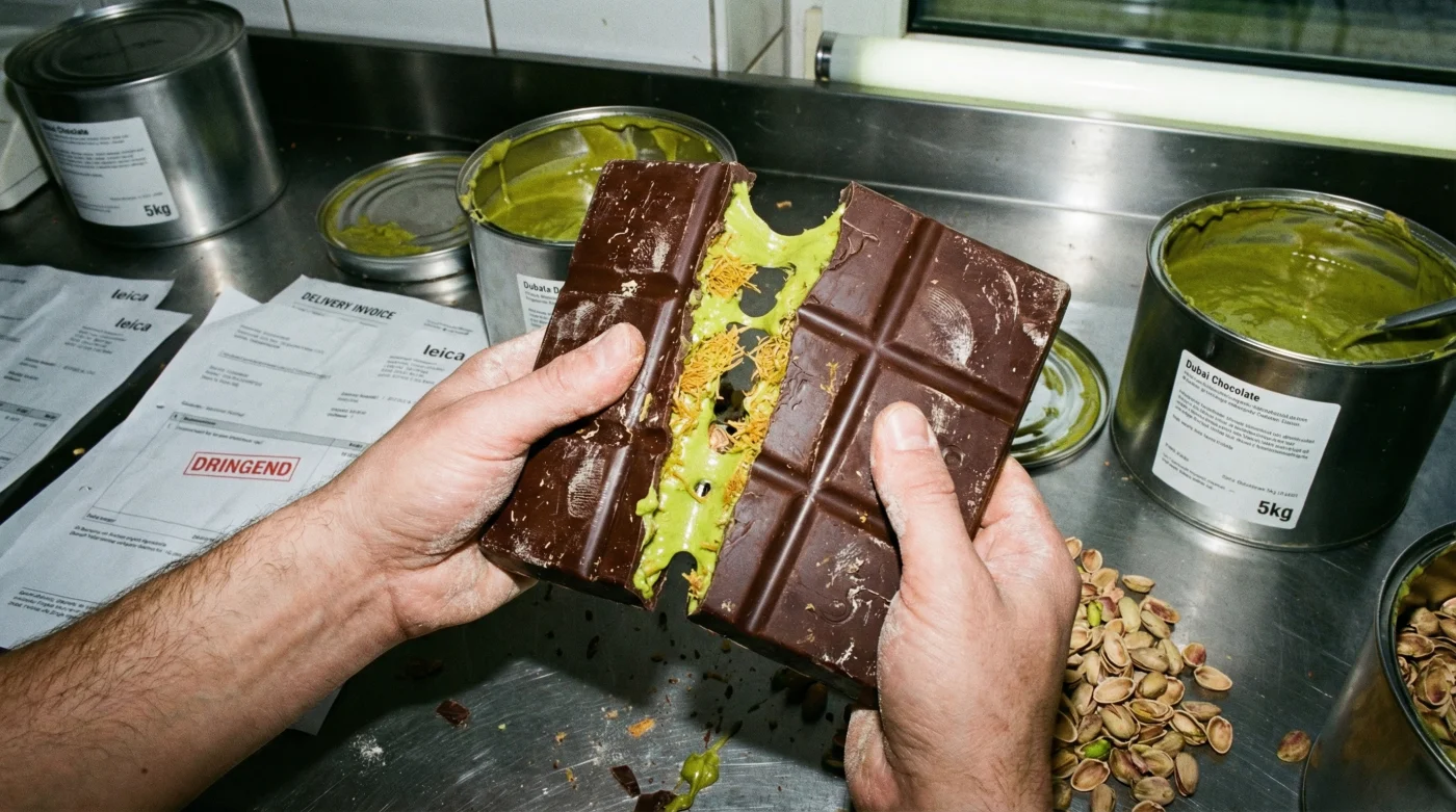 Die klassische Tafelschokolade verliert an Boden, weil Konsumenten zunehmend nach multisensorischen Erlebnissen suchen. Experten raten, das Phänomen nicht als einfachen Social-Media-Trend abzutun. Die sogenannte Dubai Schokolade kombiniert zartschmelzende Schokolade mit einer massiven Füllung aus Kadaifi (feinem Engelshaar) und reiner Pistaziencreme. Dieser Kontrast aus weich, cremig und extrem knusprig erzeugt beim Kauen Frequenzen, die das menschliche Gehirn als besonders befriedigend einstuft. Der plötzliche Ansturm auf diese spezifische Textur hat dazu geführt, dass die Nachfrage nach der echten Pistacia vera in Deutschland um fast 400 Prozent im Vergleich zum Vorjahr gestiegen ist.